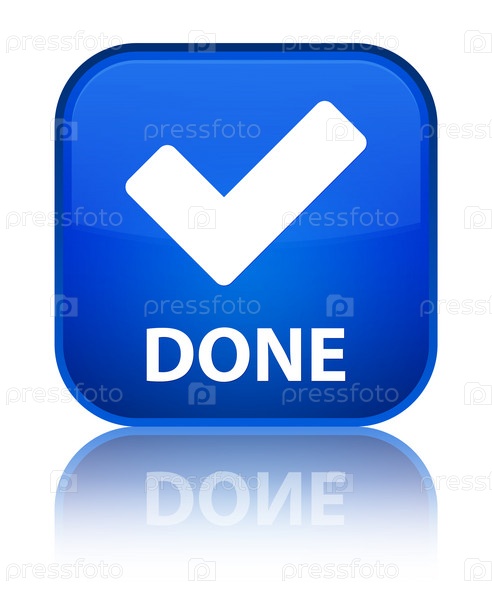 Сделано (икона проверки) специальная синяя квадратная кнопка