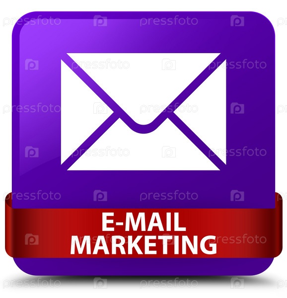 Маркетинг по электронной почте фиолетовый квадратный кнопка красная лента посередине