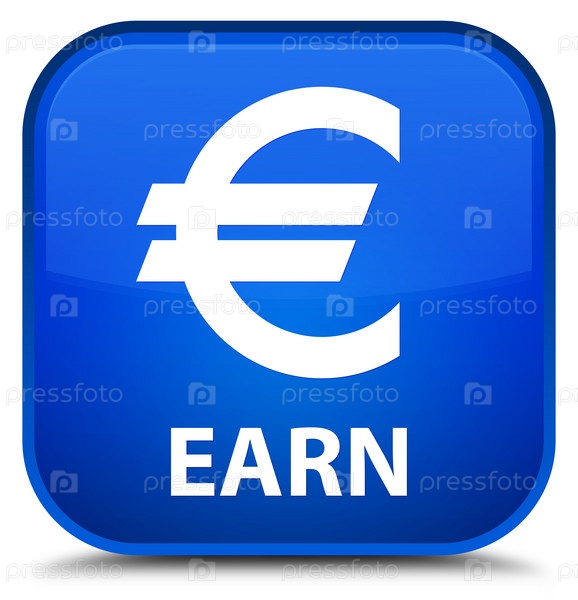 Заработать (знак евро) специальная синяя квадратная кнопка