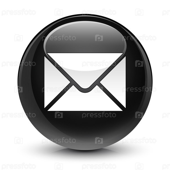 Икона электронной почты стеклянная черная круглая кнопка
