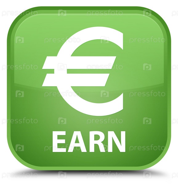 Заработать (знак евро) специальная мягкая зеленая квадратная кнопка