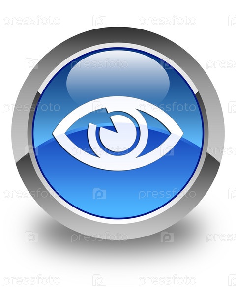 Икона глаз блестящая голубая круглая кнопка