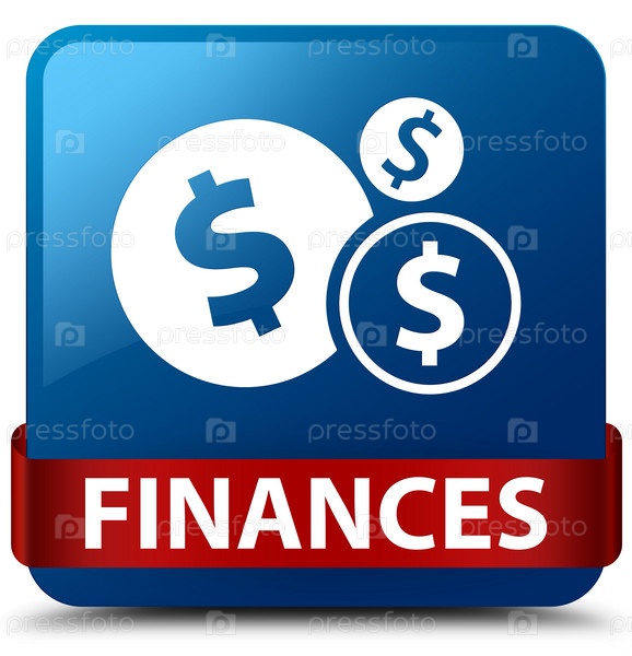 Финансы (знак доллара) синяя квадратная кнопка красная лента посередине