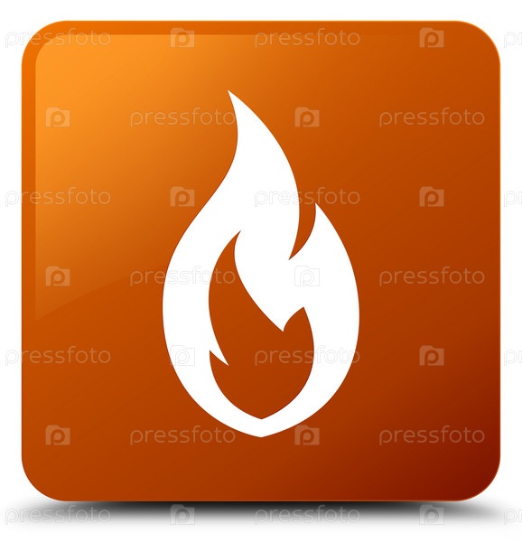 Икона огненного пламени коричневая квадратная кнопка