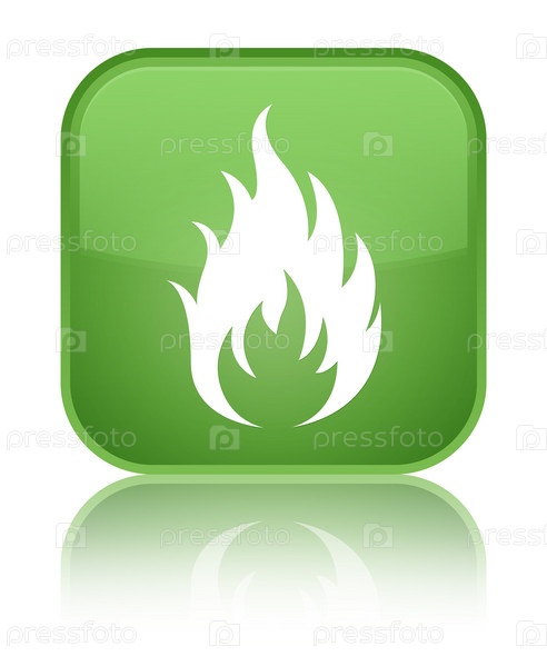 Икона огня специальная мягкая зеленая квадратная кнопка