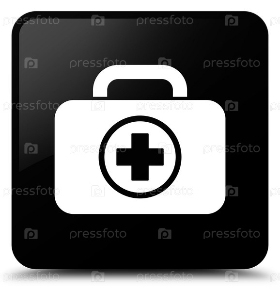 Икона аптечки первой помощи черная квадратная кнопка