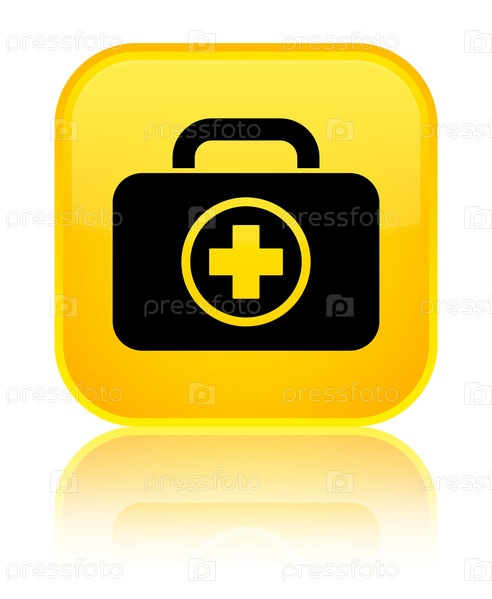 Икона аптечки первой помощи специальная желтая квадратная кнопка