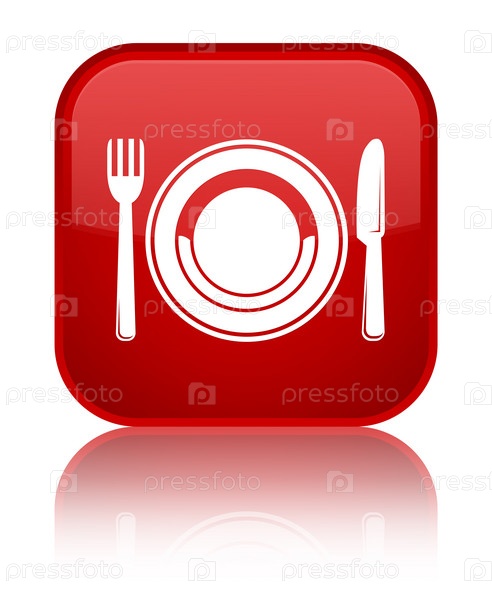 Икона пищевой тарелки - специальная красная квадратная кнопка