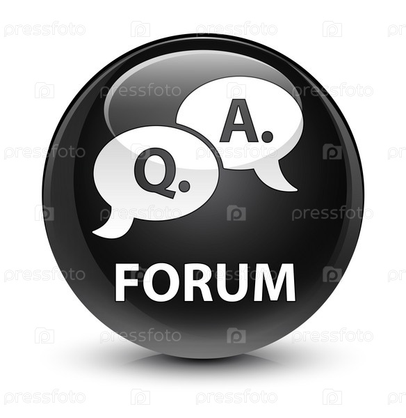 Форум (икона пузыря вопросов и ответов) стеклянная черная круглая кнопка