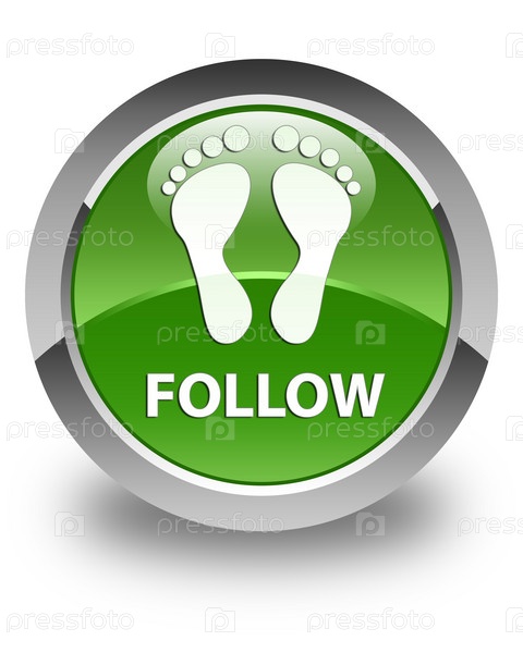 Следуйте (икона отпечатков) глянцевая мягкая зеленая круглая кнопка