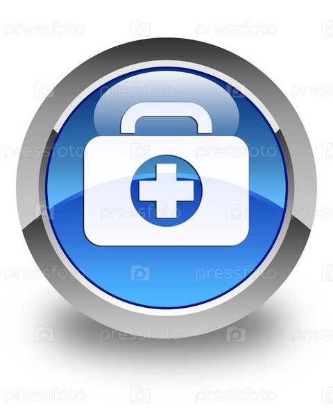 Икона пакета первой помощи глянцевая голубая круглая кнопка