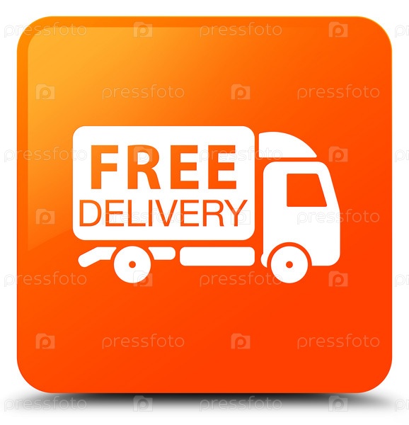 Икона бесплатного грузовика для доставки оранжевой квадратной кнопки