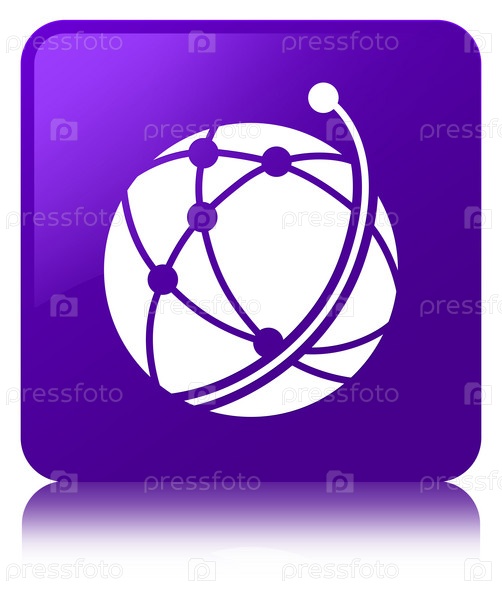 Икона глобальной сети фиолетовая квадратная кнопка