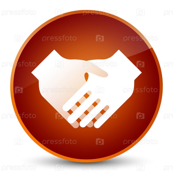 Икона рукопожатия с элегантной коричневой круглой кнопкой