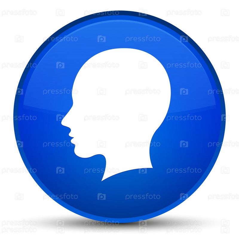 Голова икона женского лица специальная голубая круглая кнопка