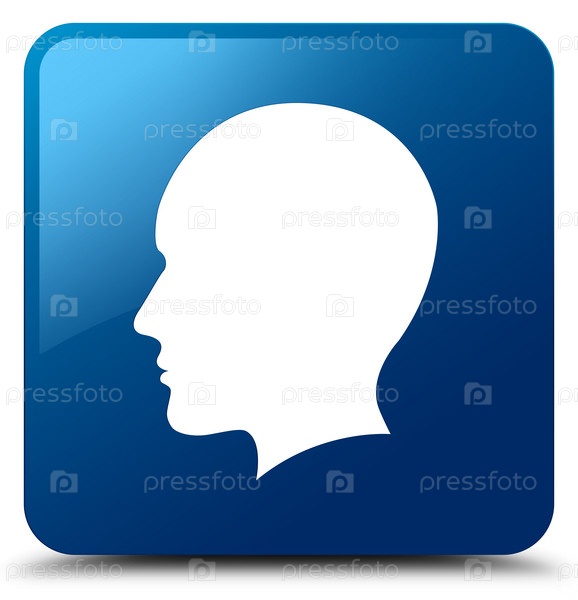Икона головы мужского лица синяя квадратная кнопка
