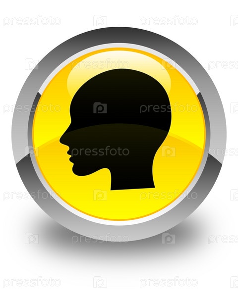 Голова икона женского лица глянцевая желтая круглая кнопка