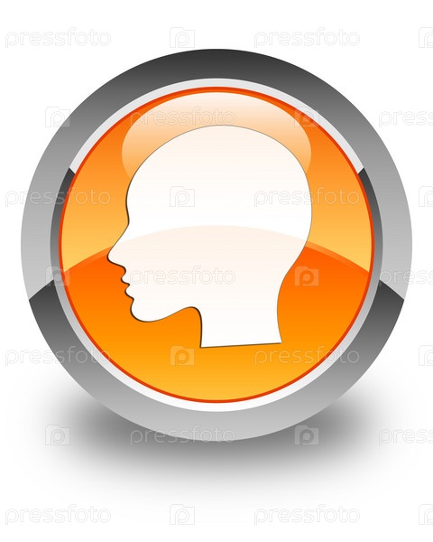 Голова икона лица женщины блестящий оранжевый круглый кнопка