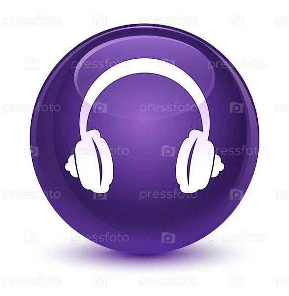 Икона наушников стеклянная фиолетовая круглая кнопка