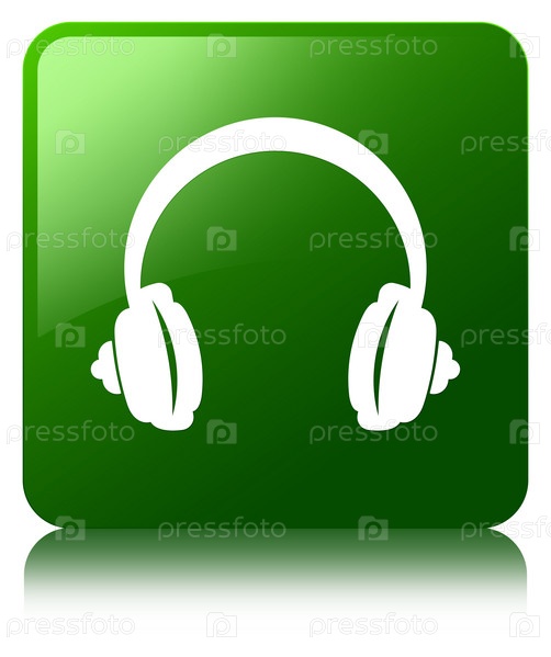 Икона наушников зеленая квадратная кнопка