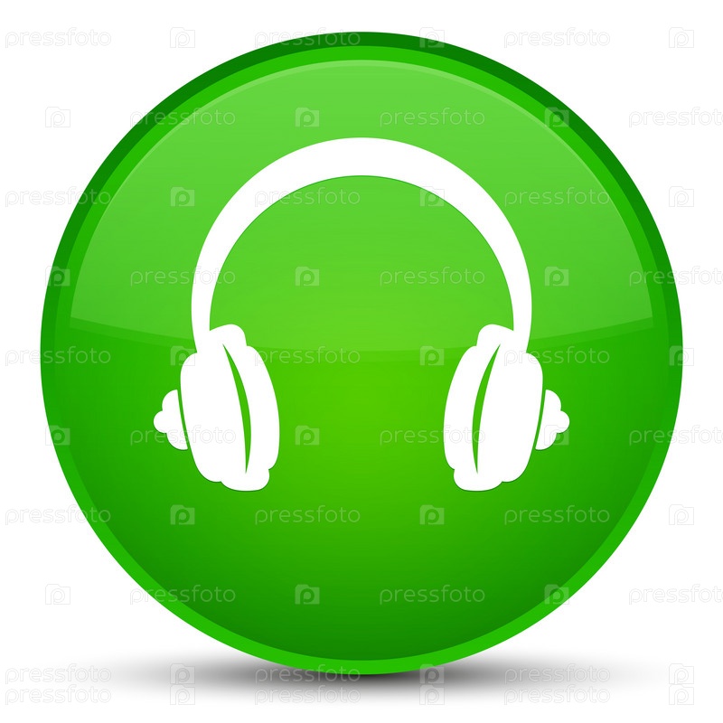 Икона наушников специальная зеленая круглая кнопка