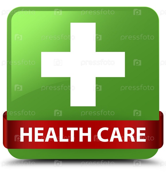 Здравоохранение (знак плюс) мягкий зеленый квадратный кнопка красная лента посередине