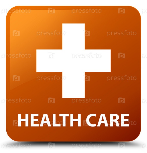 Здравоохранение (плюс знак) коричневая квадратная кнопка
