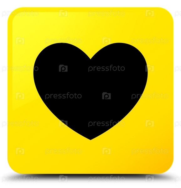 Икона сердца желтая квадратная кнопка