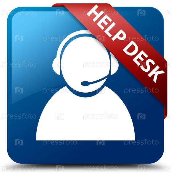 Help desk (икона обслуживания клиентов) синяя квадратная кнопка красная лента в углу