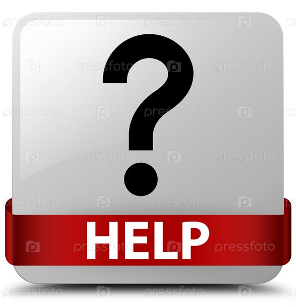 Помощь (икона вопроса) белая квадратная кнопка красная лента посередине