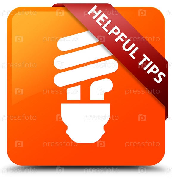 Полезные советы (икона лампочки) оранжевая квадратная кнопка красная лента в углу