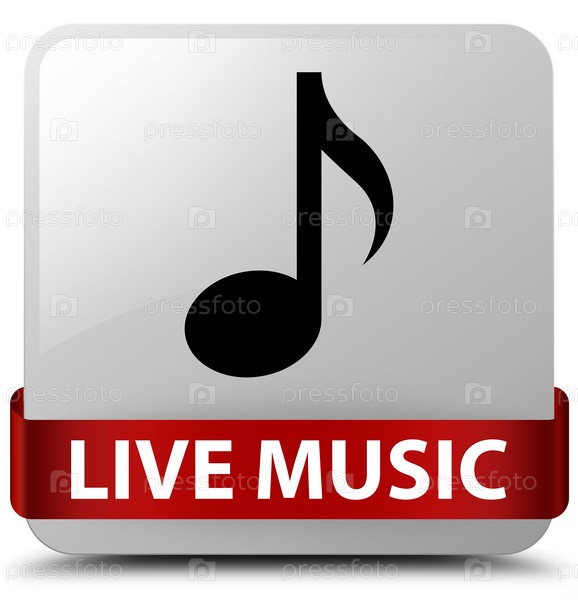 Живая музыка белая квадратная кнопка красная лента посередине