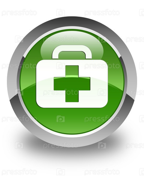 Икона медицинского пакета глянцевая мягкая зеленая круглая кнопка