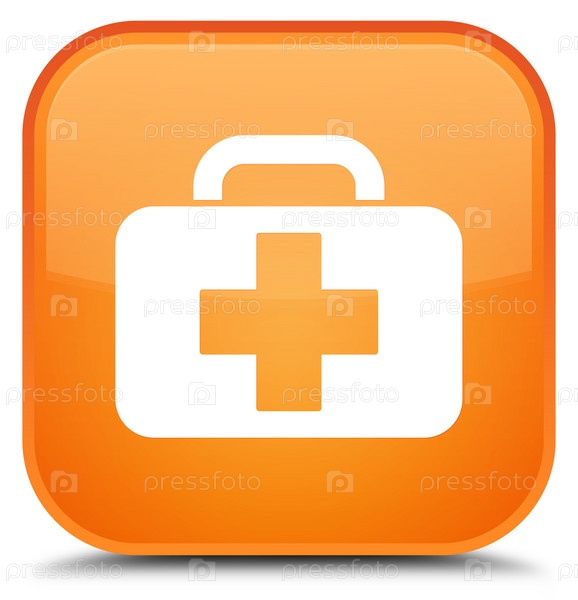 Икона медицинского пакета специальная оранжевая квадратная кнопка