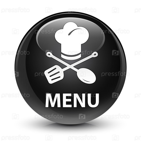 Меню (икона ресторана) стеклянная черная круглая кнопка