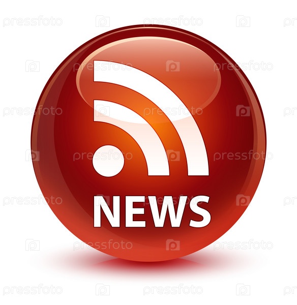 Новости (икона RSS) стеклянная коричневая круглая кнопка