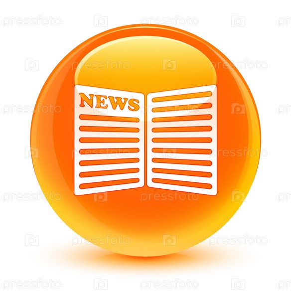 Икона газеты стеклянная оранжевая круглая кнопка