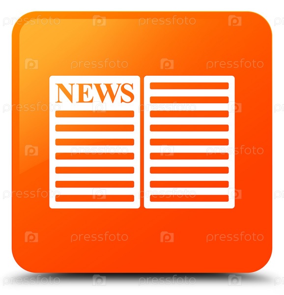 Икона газеты оранжевая квадратная кнопка