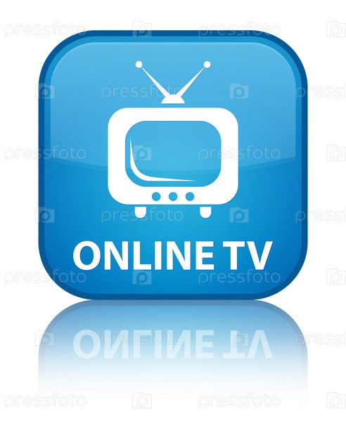 Онлайн-телевизионный спец циан синего квадратного кнопки