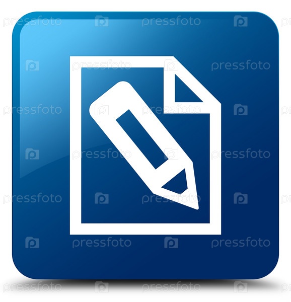Карандаш в иконе страницы синяя квадратная кнопка