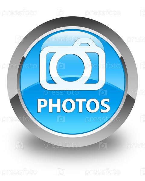 Фото (икона камеры) блестящая сине-циановая круглая кнопка