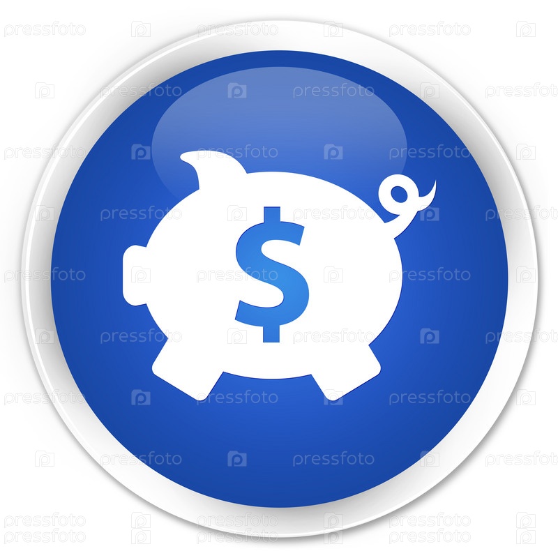 Пигги-банк долларовый знак иконка премиум синий круглый кнопка