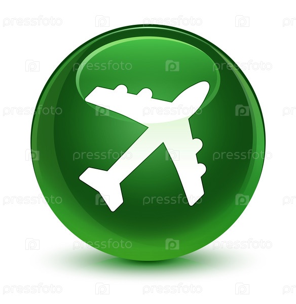 Икона самолета стеклянная мягкая зеленая круглая кнопка