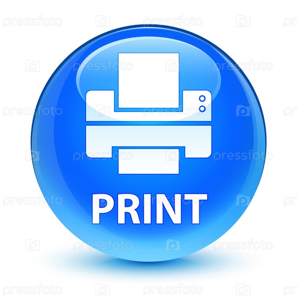 Печать (икона принтера) стеклянный синий синеватый круглый кнопка
