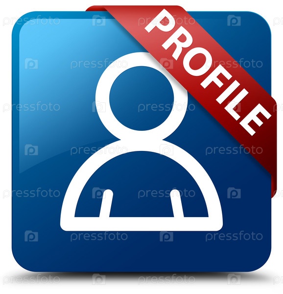 Профиль (икона члена) синяя квадратная кнопка красная лента в углу
