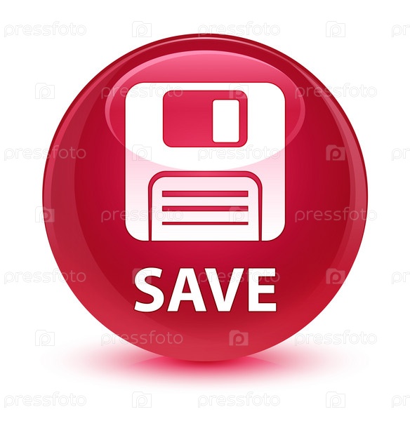 (икона дискеты) стеклянная розовая круглая кнопка Сохранить