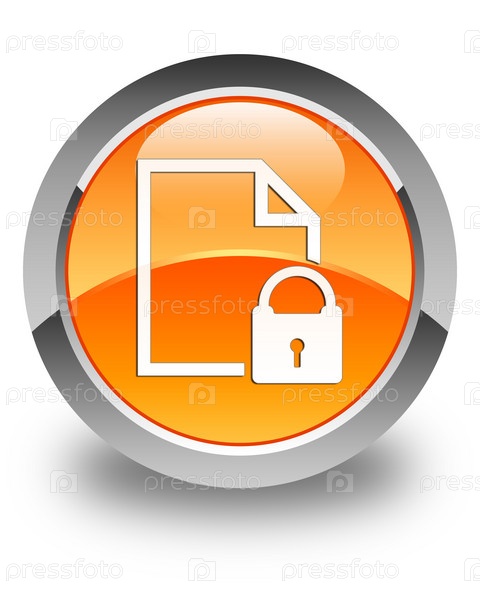 Икона безопасного документа блестящая оранжевая круглая кнопка