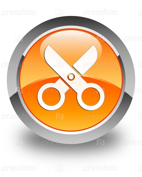 Икона ножниц блестящая оранжевая круглая кнопка