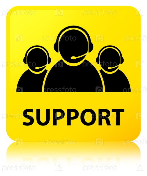Поддержка (икона команды по обслуживанию клиентов) жёлтая квадратная кнопка