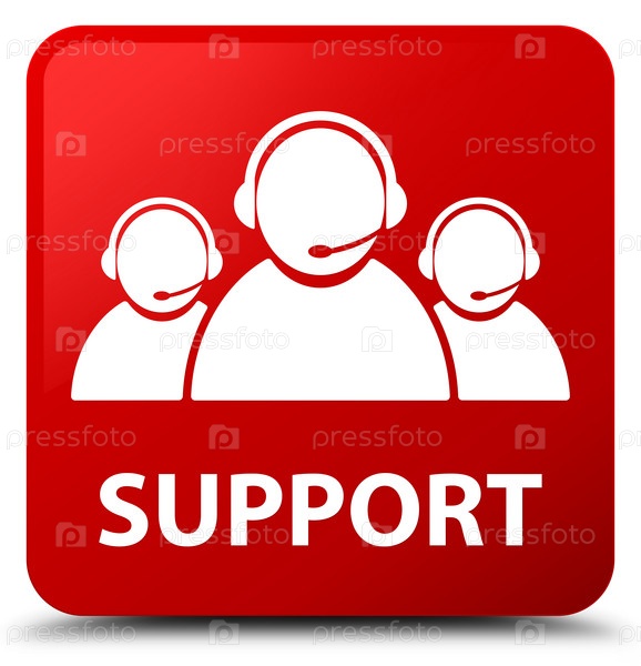 Поддержка (икона команды по обслуживанию клиентов) красная квадратная кнопка